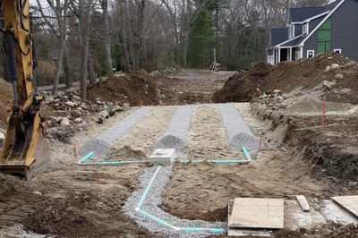 2. DrainfieldThe wastewater flows from the septic tank into a shallow, covered trench filled with gravel or stone. The wastewater filters through the gravel and is further treated by microbes in the soil. The soil also removes harmful bacteria, viruses, and nutrients.